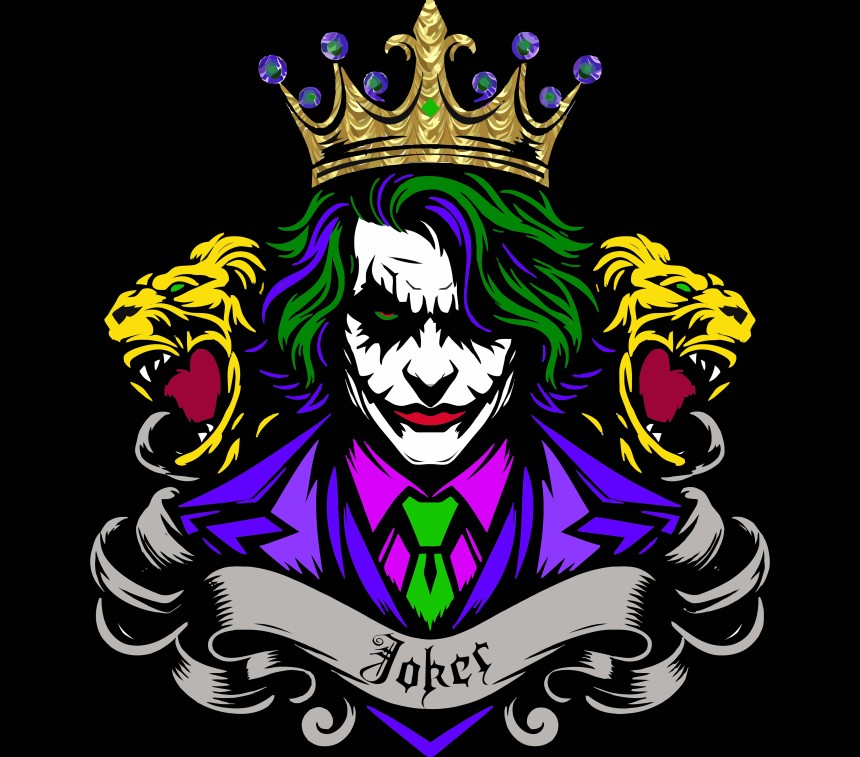 A "royal crest" logo for DC Comics Batman character, the Joker.